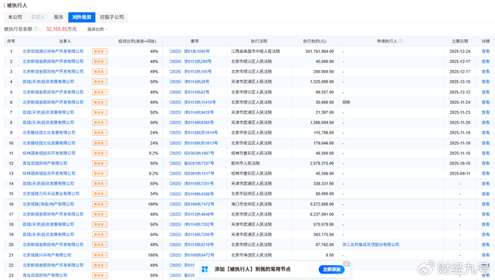 更值得警惕的是,风险已呈现扩散态势。除控股股东与上市公司外,城建发展多家核心控股子公司均已登上被执行人名单,包括北京城建(海南)地产有限公司、北京城建兴华地产有限公司、北京城建兴顺房地产开发有限公司等,覆盖多地核心业务板块。