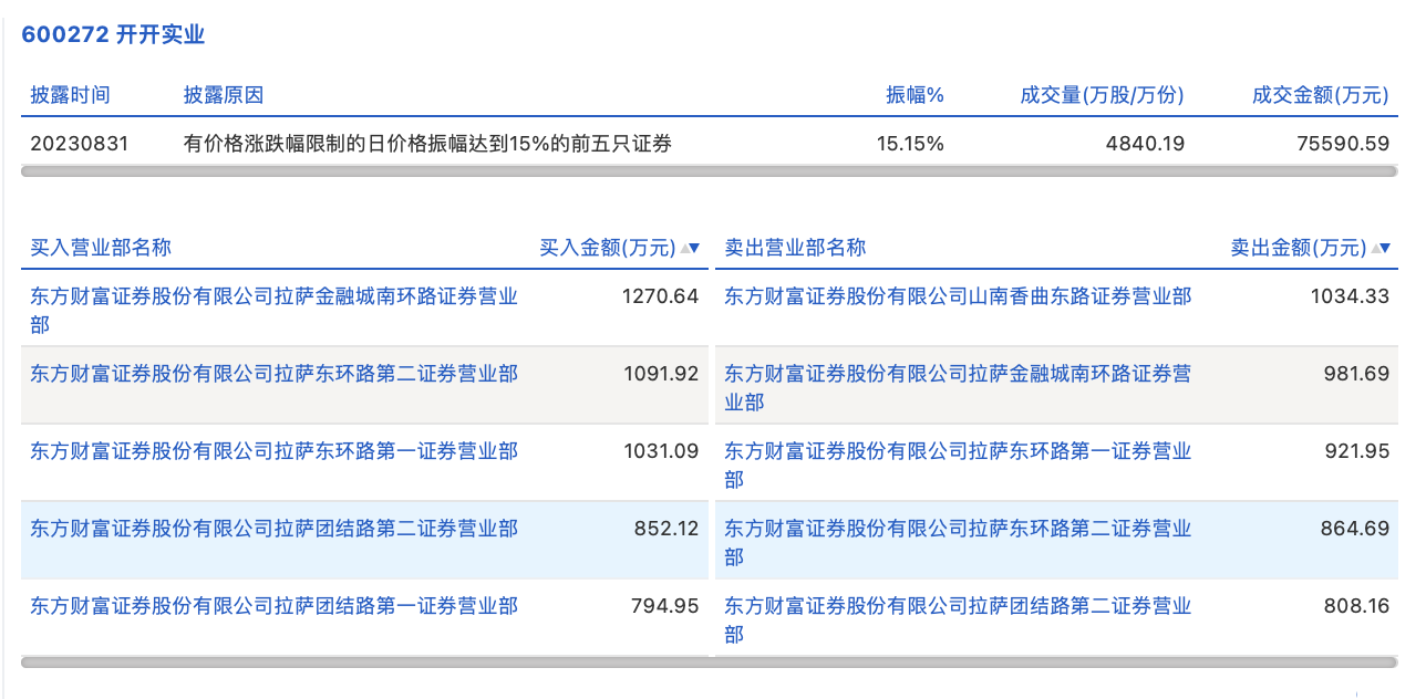 具体来看,东方财富证券拉萨金融城南环路证券营业部、东方财富证券拉萨东环路第二证券营业部分别买入1270.64万元、1091.92万元;东方财富证券山南香曲东路证券营业部、东方财富证券拉萨金融城南环路证券营业部分别卖出1034.33万元、981.69万元。