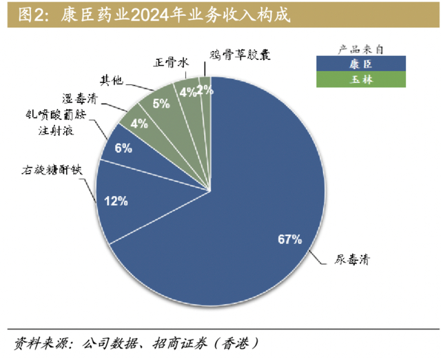 尿毒清颗粒可以说目前稳居肾病中成药品类领先地位,2024全年实现销售额18.8亿,同比增长13.9%,占公司整体营销额的63.3%,是公司最主要的业绩来源。
