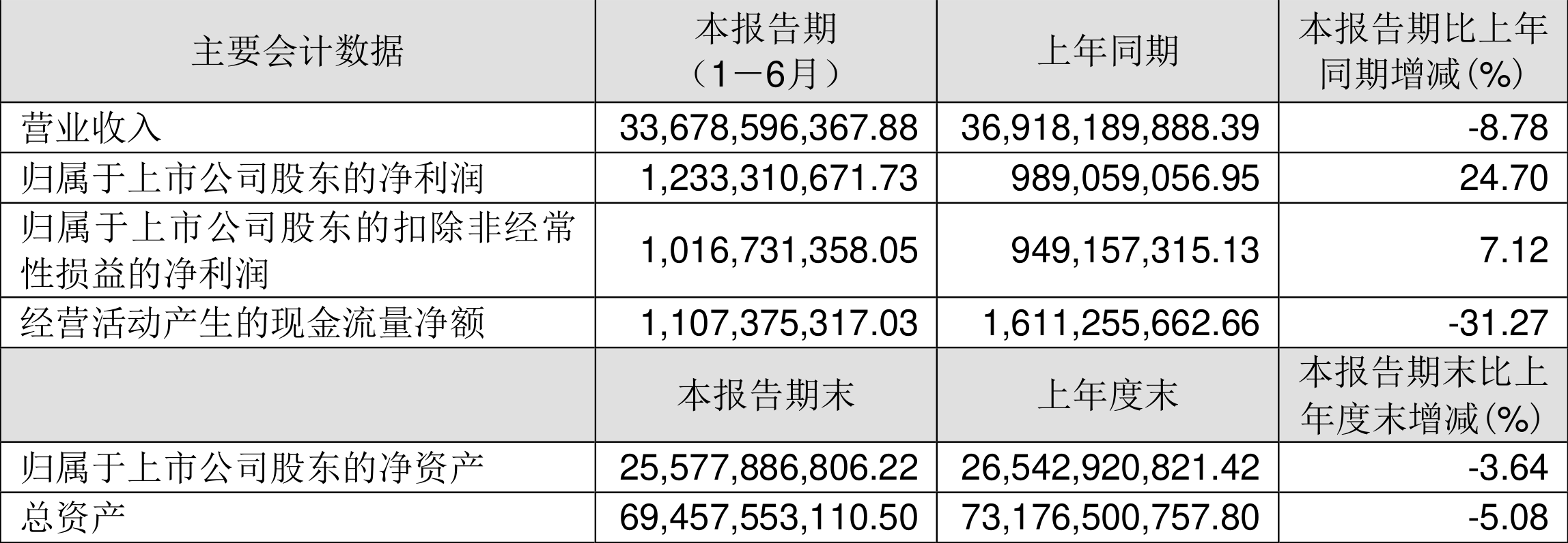 2024年上半年,公司经营活动现金流净额为11.07亿元,同比下降31.27%;筹资活动现金流净额6.68亿元,同比减少20.37亿元;投资活动现金流净额-28.82亿元,上年同期为-24.45亿元。