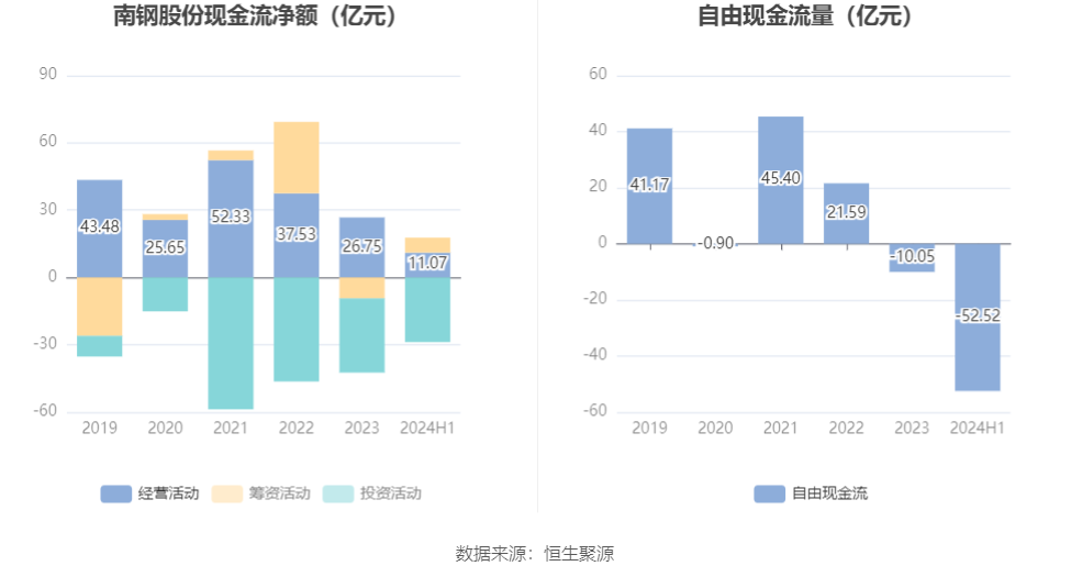 进一步统计发现,2024年上半年公司自由现金流为-52.52亿元,上年同期为-14.77亿元。