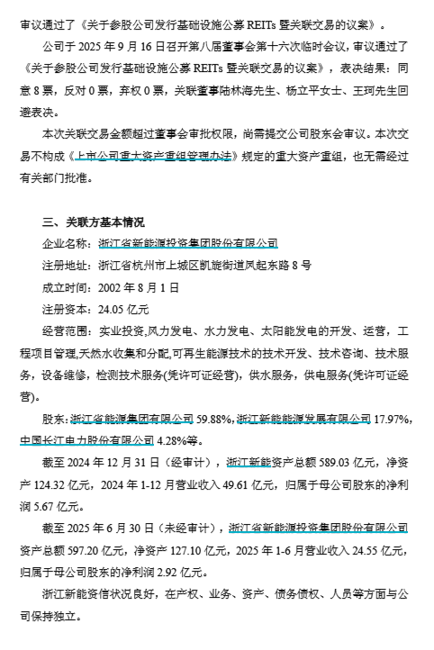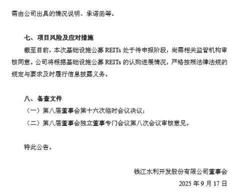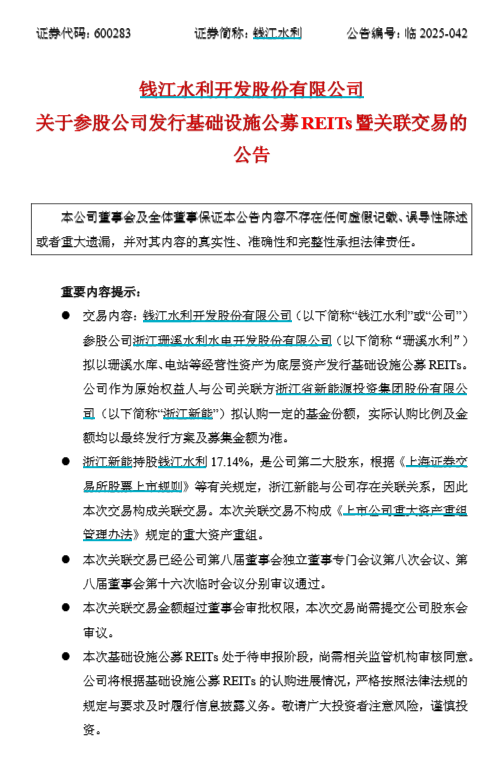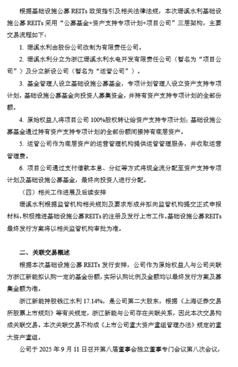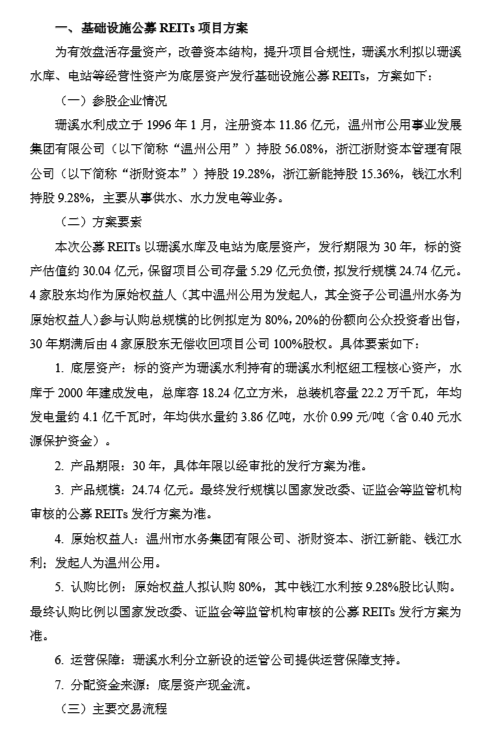 钱江水利:拟以珊溪水库、电站等经营性资产为底层资产发行基础设施公募REITs