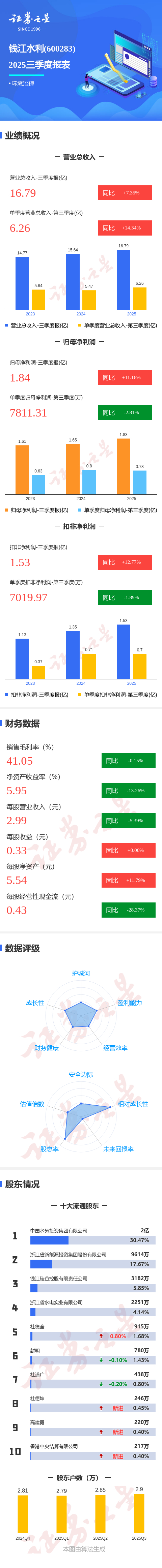 图解钱江水利三季报:第三季度单季净利润同比下降2.82%