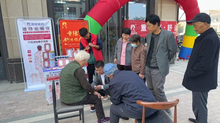 期间,羚锐制药将在全国各地市连续开展活动超1000场。现场不仅有身着“有关爱,没疼痛”红色马甲的羚锐人热情地为老人们讲解科学镇痛、舒适镇痛的知识,还为参与活动的老人们精心准备了适用于颈椎病(神经根型)、腰部膝部骨性关节病、风湿性关节病等常见性疼痛的通络祛痛膏、活血消痛酊等产品,现场帮助每一位参与体验的老人按摩穴位、组合敷贴,为他们缓解疼痛、带来舒适。
