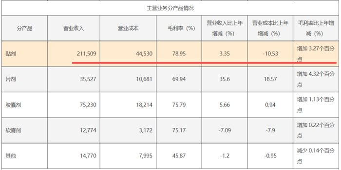 根据公司2024年报数据,其贴膏剂产品的毛利率高达79.0%。这意味着每卖出100块钱的膏药,就有将近80块钱是毛利。极高的毛利率,叠加品牌复购率,让骨科贴膏业务成为了源源不断的现金奶牛。