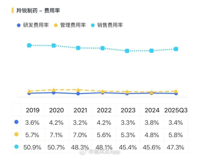 过去市场对这家公司的印象是销售费用高企。但观察近几年的数据,随着品牌认知的稳固和直销渠道的成熟,规模效应开始显现——销售费用率虽然绝对值仍不低,但整体呈现优化趋势。