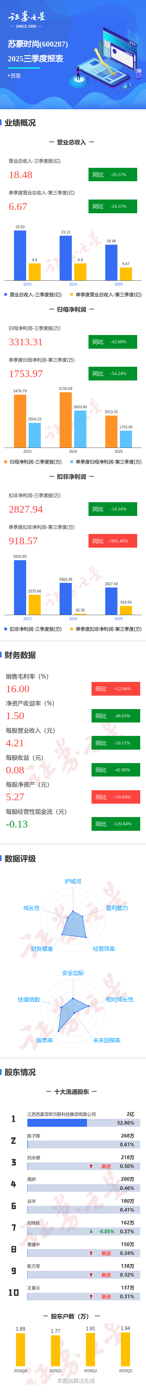 图解苏豪时尚三季报:第三季度单季净利润同比下降54.25%