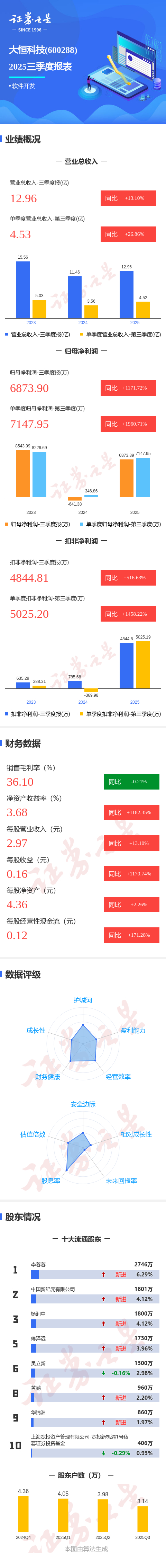 图解大恒科技三季报:第三季度单季净利润同比增长1960.72%