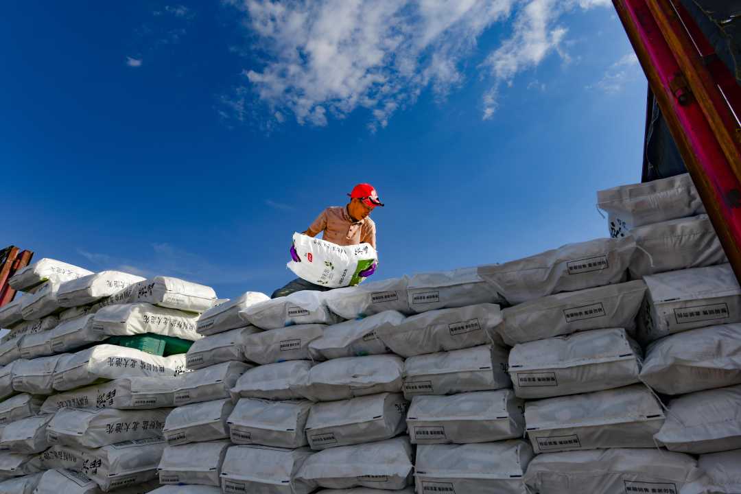 8月24日,内蒙古自治区鄂尔多斯市鄂托克前旗北大池盐场,员工装车准备外运。