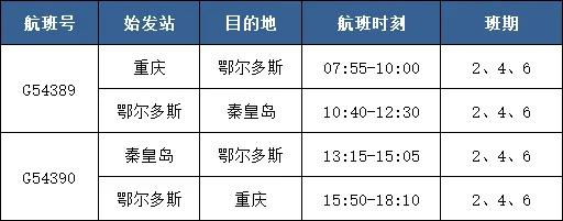 重庆=鄂尔多斯=秦皇岛航线