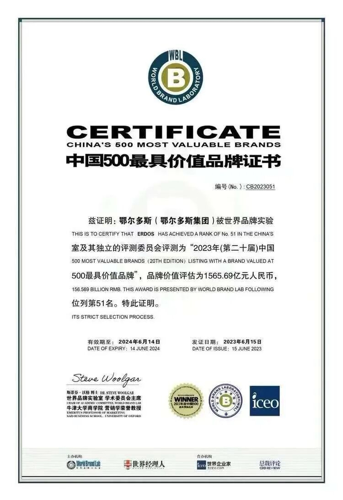 虽然在2023年鄂尔多斯首度跻身“world Brand lad中国500最具价值品牌“的第51位,但这只是一个开始。