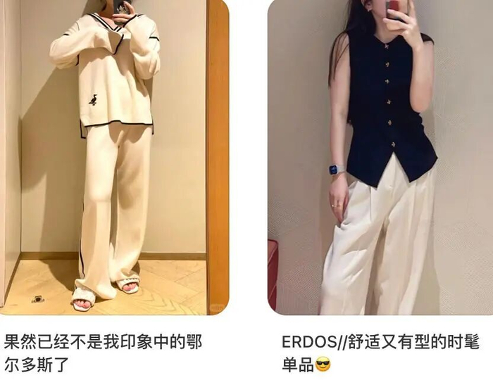 图源:小红书过去,鄂尔多斯贩卖的是羊绒的“温暖”功能;现在,ERDOS贩卖的是都市女性的“精致、自信”身份,1436贩卖的是“低调的顶级品味”,产品从“保暖用品”变成了“有特性的服装品牌”。