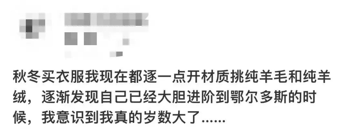 图源:小红书然而,时代的审美悄然更迭,当上一代消费者渐渐老去,新的都市中产和年轻一代却对这个老朋友投来了陌生甚至略带嫌弃的目光:“太老气”、“像妈妈穿的”、“设计保守”,这并非羊绒这种“软黄金”本身失宠,而是一场典型的“品牌代沟”危机。