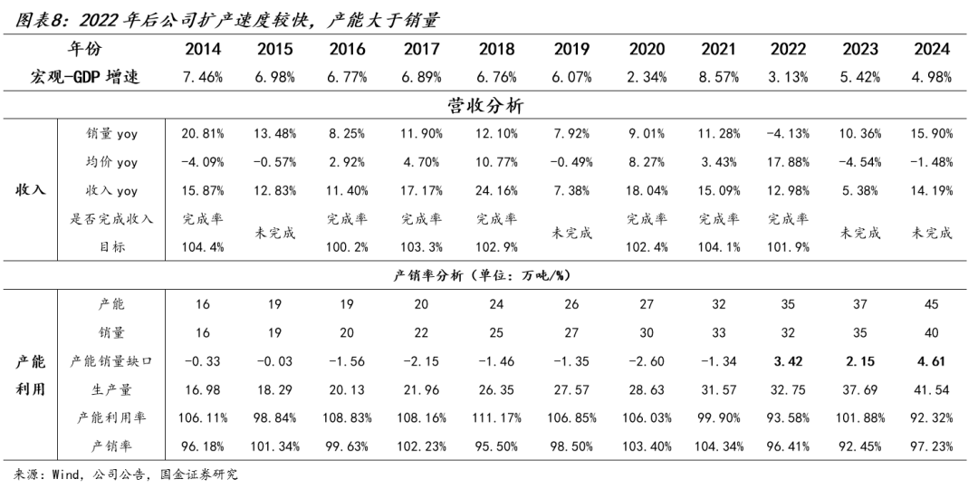 2021-2022年多处项目完成日期滞后,多数集中在2023-2024年释放,2024年公司产能已超45万吨,而销量仅41.5万吨,产能储备较为充裕,后续十五五期间留有余力。同时,公司产能结构预计围绕以下两方面调整: