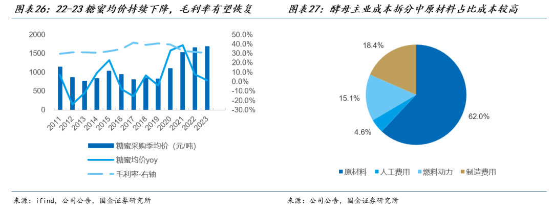 2.1毛利率影响因子1:糖蜜(占比25-30%)