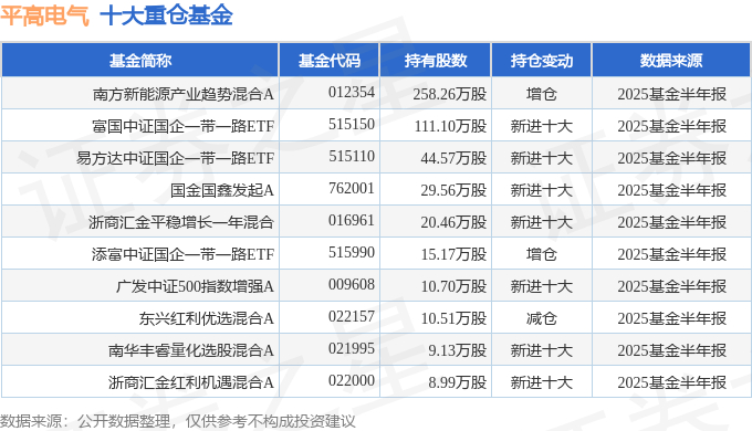 持有平高电气最多的基金为南方新能源产业趋势混合A,目前规模为6.1亿元,最新净值0.7478(10月22日),较上一交易日下跌0.97%,近一年上涨12.98%。该基金现任基金经理为熊琳。