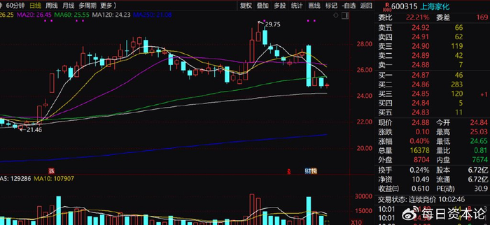 财报发布当日,上海家化股价报收于27.36元,仅微涨0.77%。戏剧性的是,10月28日股价开盘就直线跳水,单日跌幅达9.43%,收盘价跌至24.78元,随后两日其股价在25元左右震荡。股价如此走势也折射出资本市场的审慎态度。