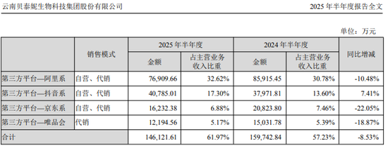 (贝泰妮2025年上半年渠道销售情况,“资市会”截图)