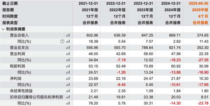 2025年上半年,中航科工营业收入为375亿,同比增长11.43%;但扣非净利润为8.51亿,同比下降23.78%。