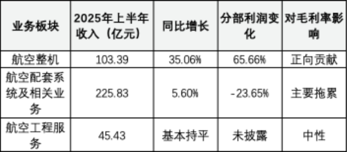 2025年上半年,中航科工整体毛利率从2024年的22.5%下降到20.22%,主要是占营收60%的航空配套系统业务利润下滑。