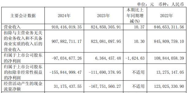 2023年、2024年及2025年前三季度,亚星化学营业收入分别为8.25亿元、9.10亿元、6.41亿元,归属于上市公司股东的净利润分别为636.45万元、-9703.47万元、-1.44亿元,归属于上市公司股东的扣除非经常性损益的净利润分别为-1.12亿元、-1.56亿元、-1.44亿元。
