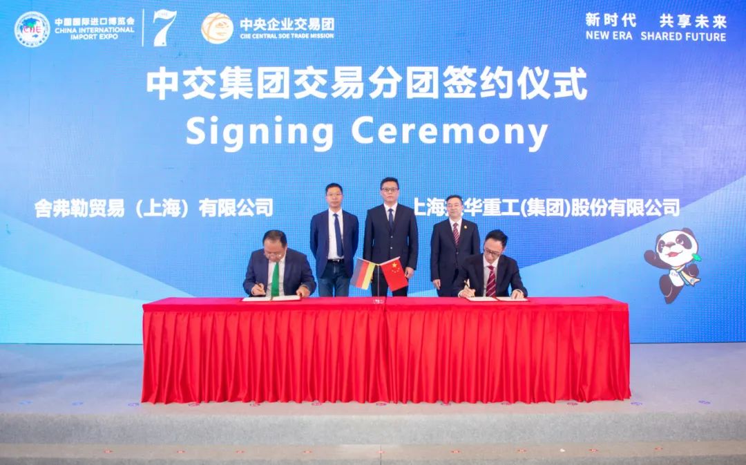 11月7日,上海振华重工在第七届中国国际进口博览会中交集团进口采购现场签约仪式上,与德国西门子(SIEMENS)、瑞士ABB、日本安川电机(YASKAWA)、德国丹纳布班察(DELLNER BUBENZER)、马来西亚Kalmar、新加坡RAM、德国Wabtec、德国普睿司曼(PRYSMIAN)、德国舍弗勒、意大利CAVOTEC等10家海外供应商签订进口采购合同。中交集团供应链管理部总经理张千管出席会议并讲话。上海振华重工党委副书记、总裁朱晓怀及部分领导班子成员出席活动。
