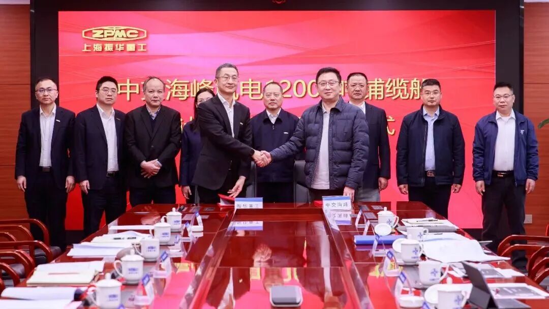 据中交海峰风电消息,3月8日,中交海峰风电12000吨铺缆船设计建造项目签约仪式在上海振华重工集团总部举行。