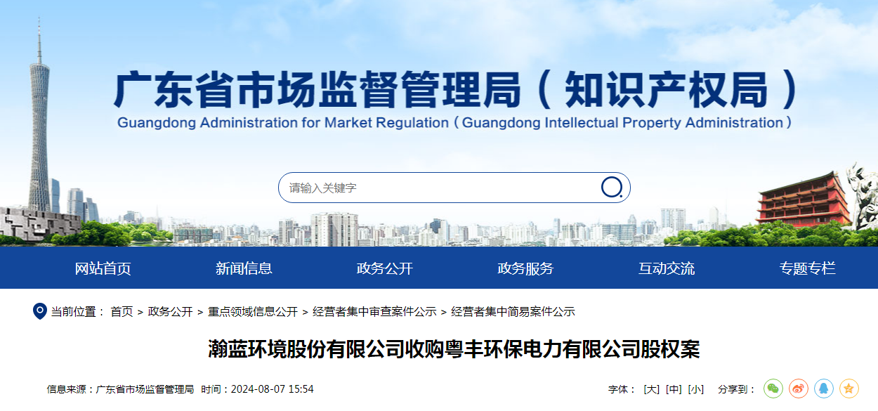 瀚蓝环境股份有限公司收购粤丰环保电力有限公司股权案