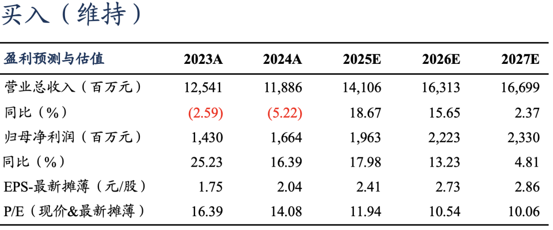 粤丰并表贡献固废增量,能源水务稳健。25Q1-3,1)固废:营收54.76亿元(+9.65亿元,+21.39%),其中粤丰贡献14.58亿元,实现净利润13.64亿元(+4.10亿元,+42.94%),其中粤丰贡献4.70亿元。①工程与装备:收入3.54亿元(+0.41亿元),其中粤丰贡献1.72亿元;②固废运营:收入51.22亿元(+9.24亿元,+22.01%),其中粤丰贡献12.86亿元,净利润13.72亿元(+4.33亿元,+46.15%),其中粤丰贡献4.70亿元。2)能源:营收27.83亿元,同比基本持平,天然气销售量7.23亿立方米(-0.72%),气源多元化保障盈利稳定。3)供水:营收7.14亿元(+0.67%),供水量3.67亿吨(-0.40%)。4)排水:营收5.04亿元,污水处理量2.17亿吨(同比+5.58%),轻资产运营业务收入占比提升。 垃圾焚烧优势巩固,吨发&供热双增,协同效应持续释放。截至25Q3末公司垃圾焚烧在手产能达97,590吨/日,位居行业前三,其中控股产能79,240吨/日,已投产66,190吨/日,在建2250吨/日。1)处理量:25Q1-3垃圾焚烧量1468万吨(+52%),其中瀚蓝内生976万吨(+1%),粤丰492万吨;2)发电效率:25Q1-3发电量55.78亿度(+53%),上网电量48.47亿度(+54%),吨发380度(+1%),吨上网330度(+2%),其中瀚蓝内生吨发387度(+3%),吨上网337度(+4%),粤丰吨发366度,吨上网316度;3)供热:25Q1-3供热量146.34万吨(同比+40%),供热收入2.21亿元(同比+49%),累计30个项目签订供热协议,其中22个已实现供热,增长潜力充足。其中瀚蓝内生供热量134.17万吨(+29%),供热收入1.98亿元(+34%),粤丰供热量12.17万吨。4)AIDC合作:与广东联通分公司、深城交签署AIDC合作协议,探索“绿电直供+算力”新模式。 国补回收加速+粤丰贡献,自由现金流增厚显著。25Q1-3经营性现金流量净额26.62亿元(+13.19亿元,+98.21%),主要系①粤丰并表贡献约8.20亿元,②应收账款回收改善,瀚蓝存量应收回款约15.30亿元(不含粤丰),③国补回收2.45亿元,同比加速。25Q1-3剔除14号文影响后的资本支出为13.21亿元,其中粤丰并表增加2.48亿元,瀚蓝内生10.73亿元(-2.36亿元)。25Q1-3自由现金流(不含股权类投资支出)为13.53亿元(+12.81亿元),其中粤丰并表增加5.71亿元 盈利预测与投资评级:公司凭借优秀整合能力实现跨越发展,并购及内生增长双强,协同增效可期,自由现金流持续增厚,分红具备提升潜力。我们维持2025-2027年归母净利润预测19.63/22.23/23.30亿元,对应PE 12/11/10倍,维持“买入”评级。