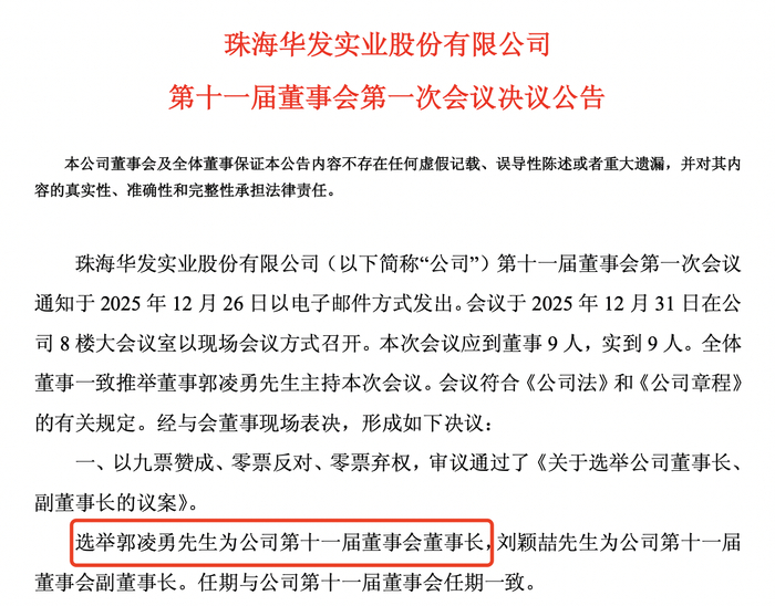 华发股份换届:郭凌勇为董事长,向宇出任总裁