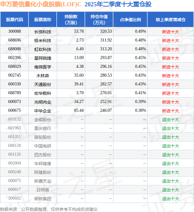 申万菱信量化小盘股票(LOF)C的前十大重仓股如下: