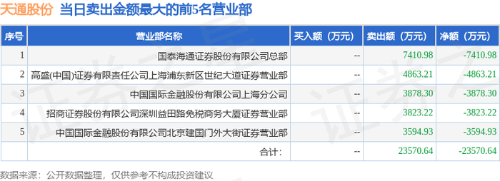 12月26日天通股份(600330)龙虎榜数据:游资消闲派上榜
