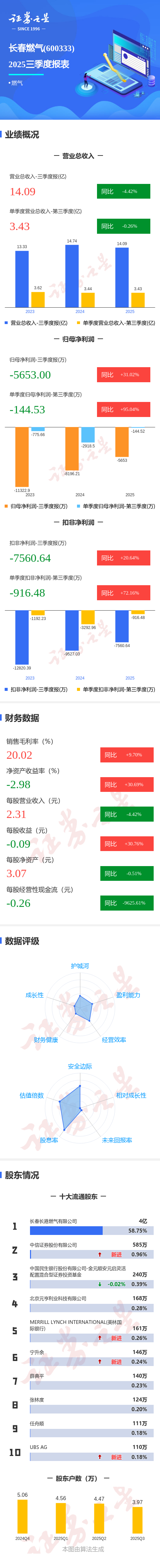图解长春燃气三季报:第三季度单季净利润同比增长95.05%