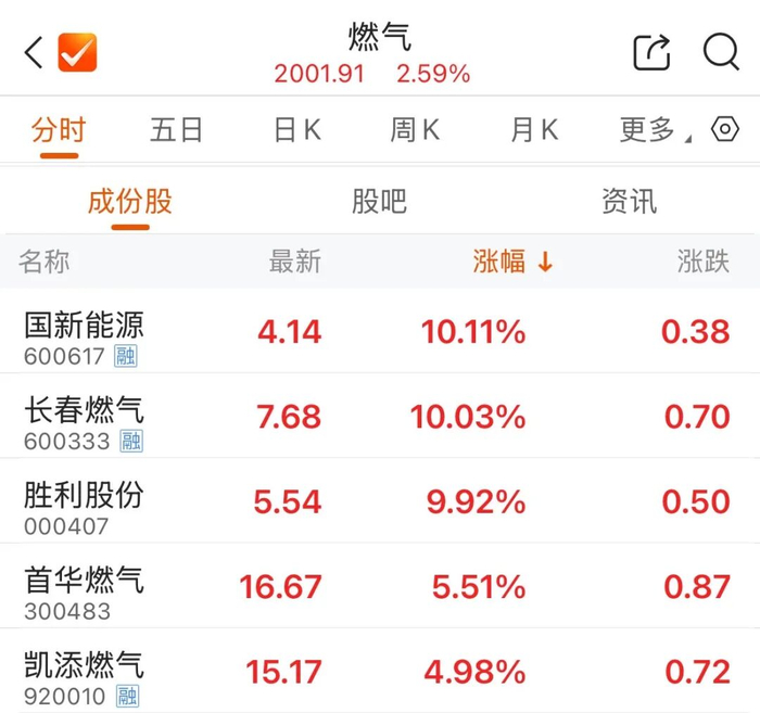 早盘,燃气股逆势活跃,长春燃气开盘不到一分钟直线拉升涨停;国新能源、京能热力、联美控股等涨停,胜利股份4连板。