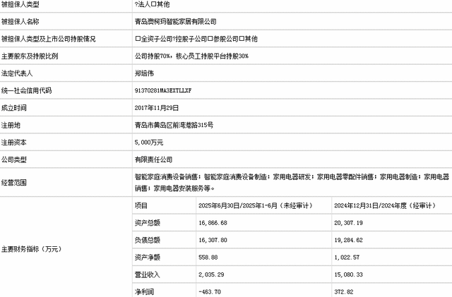 而从子公司表现来看,多数核心业务板块处于亏损状态。在财报披露的七家主要子公司及对公司净利润影响达10%以上的参股公司中,青岛澳柯玛生活电器有限公司实现营业收入1.61亿元,但净利润亏损547.53万元;青岛澳柯玛环境科技有限公司营收规模为2.72亿元,净利润也亏损491.08万元;而负责智能家居业务的青岛澳柯玛智能家居有限公司营业收入为2035.29万元,净利润亏损463.70万元。在整体盈利承压的背景下,仅青岛澳柯玛冷链集成有限公司实现盈利,净利润为378.64万元,成为少数盈利的子公司。