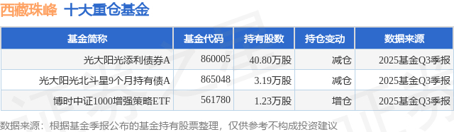 11月13日西藏珠峰涨6.87%,光大阳光添利债券A基金重仓该股