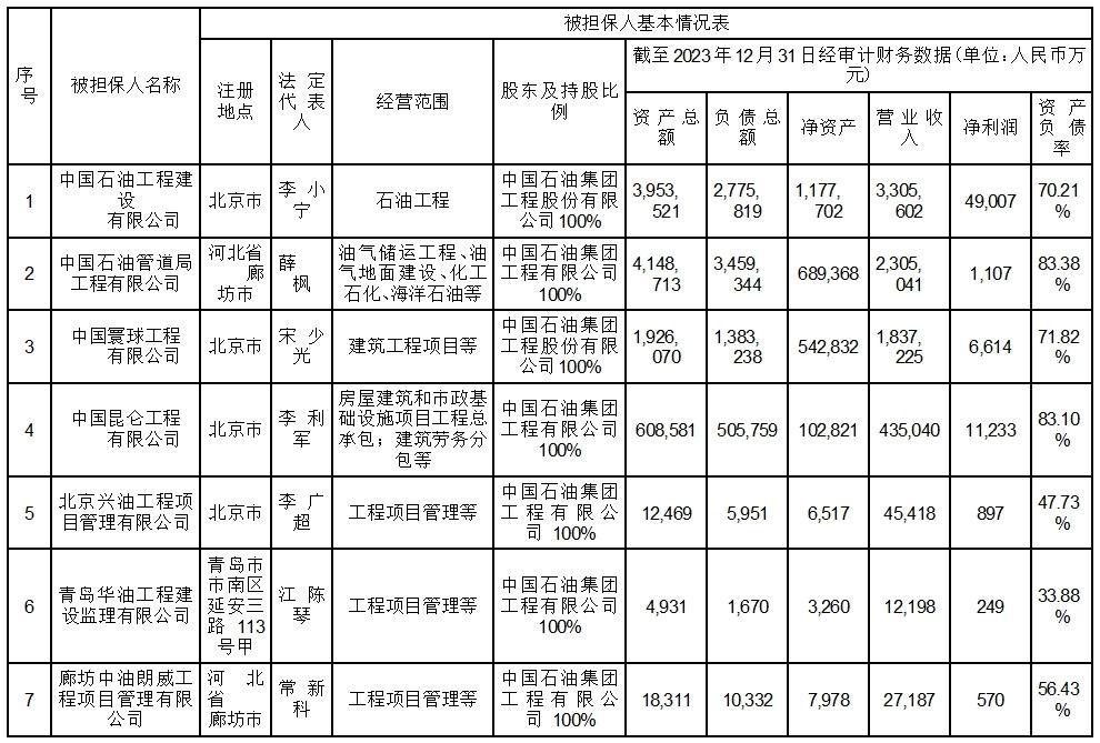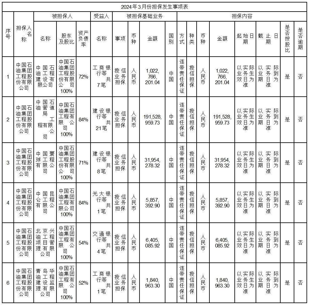 具体内容详见同日刊登在上海证券交易所网站(http://www.sse.com.cn)的《中油工程关于2023年度担保实际发生及2024年度担保预计情况的公告》(公告编号:临2024-018)