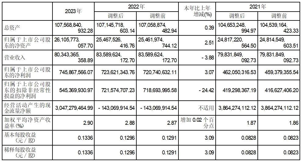 为回报广大股东对公司的支持,同时兼顾公司未来业务发展需要,公司拟以2023年12月31日的总股本5,583,147,471股为基础,向全体股东每10股派0.41元(含税)现金股息,共派发现金红利228,909,046.31元(含税),拟分配的现金股息总额占当年归属于上市公司股东净利润745,867,566.07元的30.69%,剩余未分配利润结转下年。公司2023年度不进行资本公积金转增股本,也不进行送股。