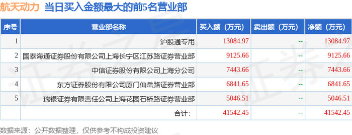 11月27日航天动力(600343)龙虎榜数据:游资章盟主上榜