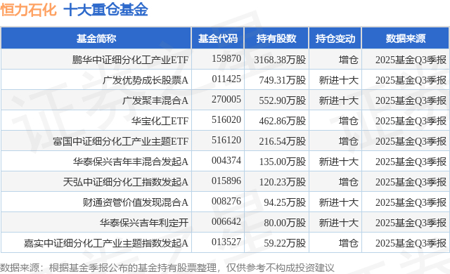 重仓恒力石化的前十大公募基金请见下表:
