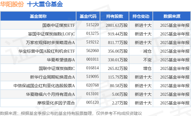 根据2025基金半年报公募基金重仓股数据,重仓该股的公募基金共10家,其中持有数量最多的公募基金为国泰基金的国泰中证煤炭ETF。国泰中证煤炭ETF目前规模为42.17亿元,最新净值1.0706(9月18日),较上一交易日下跌2.62%,近一年上涨6.85%。该公募基金现任基金经理为吴中昊。吴中昊在任的基金产品包括:国泰中证500指数增强A,管理时间为2022年1月28日至今,期间收益率为24.59%;国泰中证内地运输主题ETF,管理时间为2022年11月30日至今,期间收益率为-2.29%;国泰沪深300指数增强A,管理时间为2022年12月30日至今,期间收益率为17.25%;国泰国证新能源汽车指数C,管理时间为2022年12月30日至今,期间收益率为12.53%。