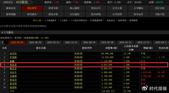 时代周报记者发现,*ST精伦这份2.3亿元的算力服务器合同背后,隐现公司第四大股东唐连奎身影。