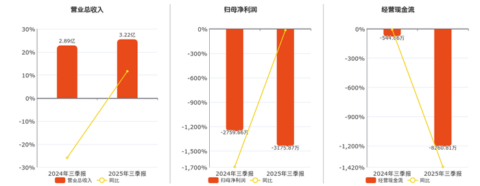 公司营业总收入为3.22亿元,在已披露的同业公司中排名第20,较去年同报告期营业总收入增加3360.58万元,同比较去年同期上涨11.64%。归母净利润为-3175.87万元,在已披露的同业公司中排名第17,较去年同报告期归母净利润减少416.21万元。经营活动现金净流入为-8260.81万元,在已披露的同业公司中排名第16,较去年同报告期经营活动现金净流入减少7716.15万元。