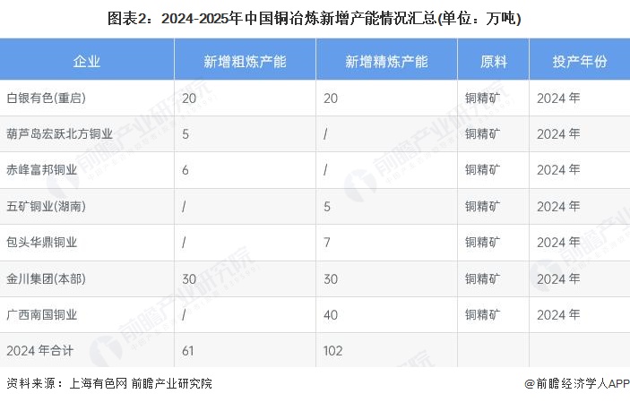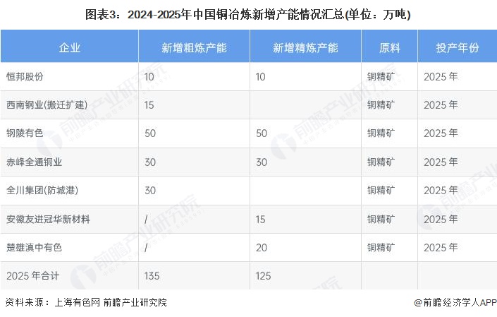 根据上海有色网的数据,2024年新增粗炼产能61万吨,新增精炼产能102万吨;2025年新增粗炼产能135万吨,新增精炼产能125万吨。