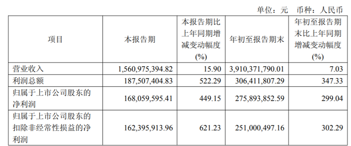 2025年前三季度,公司实现营业收入39.10亿元,同比增长7.03%;归属于上市公司股东的净利润2.76亿元,与上年同期相比增长299.04%。