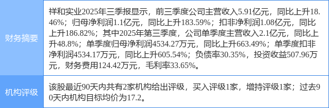 祥和实业跌5.55%,西南证券二周前给出“买入”评级,目标价17.20元
