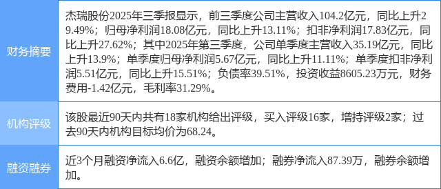 今日杰瑞股份(002353)涨6.13%,收盘报75.13元。