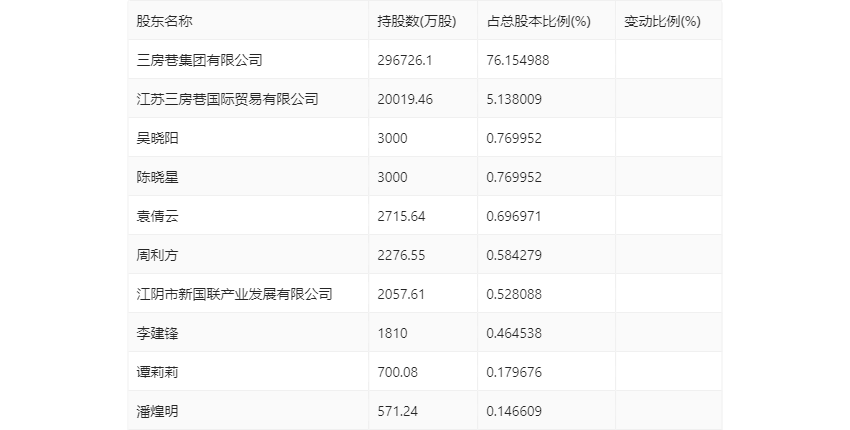 年报显示,2023年年末公司十大流通股东中,新进股东为潘煌明,取代了三季度末的泰康新机遇灵活配置混合型证券投资基金。在具体持股比例上,袁倩云、周利方持股有所上升,三房巷集团有限公司、江苏三房巷国际贸易有限公司、吴晓阳、陈晓星持股有所下降。