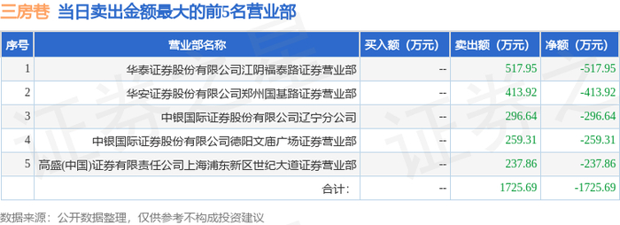 证券之星消息,沪深交易所2026年1月5日公布的交易公开信息显示,三房巷(600370)因有价格涨跌幅限制的日收盘价格涨幅偏离值达到7%的前五只证券登上龙虎榜。此次是近5个交易日内第1次上榜。