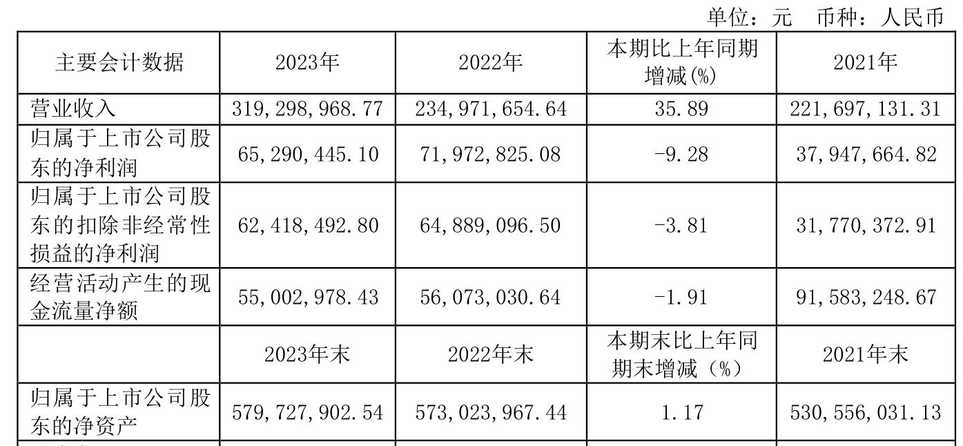 中证智能财讯 万向德农(600371)4月16日披露2023年年报。2023年,公司实现营业总收入3.19亿元,同比增长35.89%;归母净利润6529.04万元,同比下降9.28%;扣非净利润6241.85万元,同比下降3.81%;经营活动产生的现金流量净额为5500.30万元,同比下降1.91%;报告期内,万向德农基本每股收益为0.22元,加权平均净资产收益率为11.33%。公司2023年年度利润分配预案为:拟向全体股东每10股派2元(含税)。